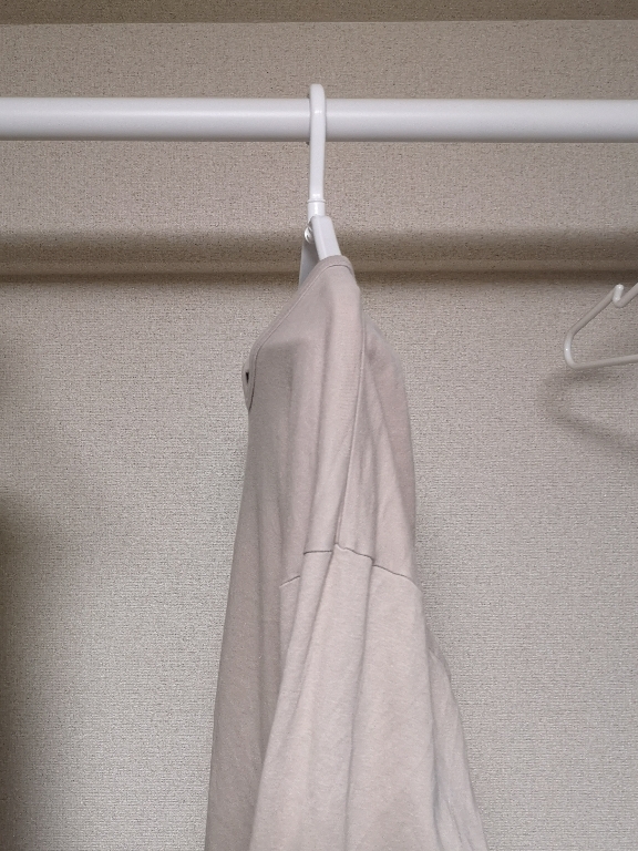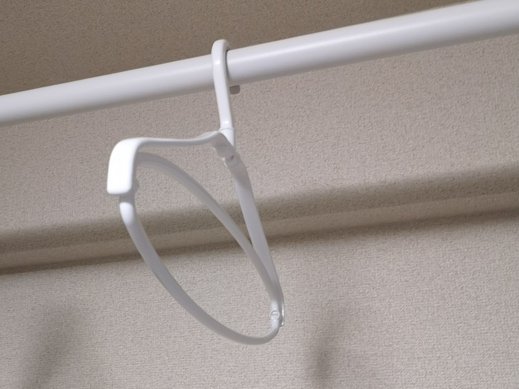 乾いた後は、アームを畳むと普通のハンガーのスペースで保管も可能だ。